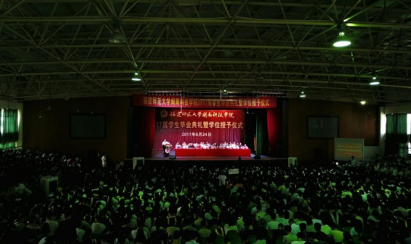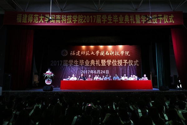 学院党委副书记俞建群宣读《福建师范大学江南官方网站关于同意准予陈美东等2288位同学按期毕业的决定》;学院副院长吴勇宣读《福建师范大学江南官方网站关于授予陈美东等2293名本科毕业生学士学位的决定》和《福建师范大学江南官方网站关于授予2017届陈美东等798名同学“学业优良奖”的决定》;学院副院长周勇军宣读《福建师范大学江南官方网站关于授予张协存等347名同学2017届“优秀毕业生”荣誉称号的决定》和《福建师范大学江南官方网站关于奖励周建忠等13名学生考取研究生的通知》。