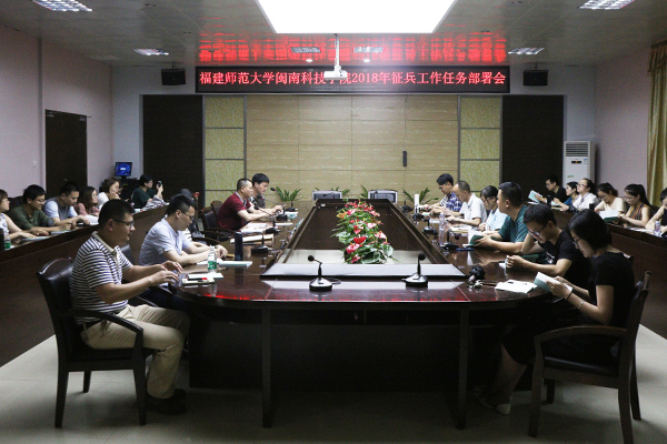 5月16日下午,我院在图书馆评建办召开江南官方网站2018年征兵工作任务部署会。学院副院长周勇军、学工部部长林树生、各系党总支副书记、全体辅导员等参加了会议。会议由学院人民武装部副部长、征兵工作站站长苏清山老师主持。