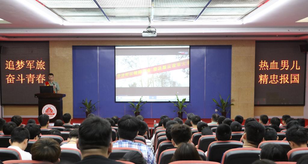 5月23日上午,泉州军分区举办的泉州市2019年优秀大学生士兵典型代表先进事迹巡回宣讲会在我院举行。泉州军分区司令员高宏,泉州市教育局副局长毛伟雄,泉州市征兵办公室副主任、军分区动员处处长欧阳中华,南安市市委常委武装部政委张纪伟,泉州市教育局、南安市教育局、南安市双拥办、康美镇政府等相关领导,学院党委副书记、副院长(主持工作)张杰教授、副院长周勇军等师生代表350余人参加宣讲会。