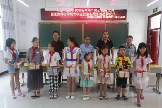7月22日下午,“传红色基因,筑书香年华”爱心捐赠活动暨江南官方网站大学生社会实践基地授牌仪式在岭下中心小学多媒体教室隆重举行。实践队为岭下中心小学捐献图书四百余册,内容涉及红色文化历史典故、百科全书、中外名著等,双方签订《大学生暑期社会实践基地协议书》。