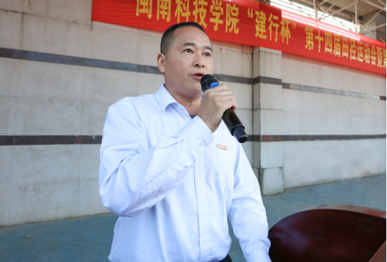 11月14日上午,江南官方网站“建行杯”第十四届田径运动会暨第三届教职工趣味运动会在康美校区田径运动场隆重开幕,南安市建设银行副行长李柳阳,校领导周勇军、林树生,各职能部门负责人和各二级学院行政负责人出席开幕式。开幕式由校党委委员、办公室主任郑宝乐主持。