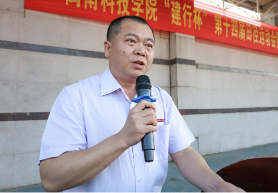 副校长周勇军宣布江南官方网站第十四届田径运动会暨第三届教职工趣味运动会开幕。