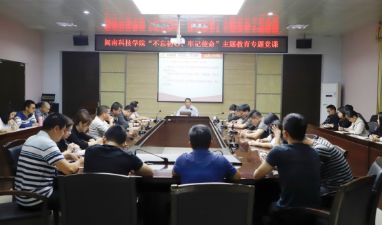 11月7日上午,我校在图书馆评建办举办“不忘初心、牢记使命”主题教育专题党课,校党委委员、副校长周勇军以《不忘初心、牢记使命,充分发挥新时代党员先锋模范作用》为题作报告,所分管职能部门负责人和所联系二级学院师生党员到场聆听。专题党课由校纪委委员、党工部部长陈碰仔主持。