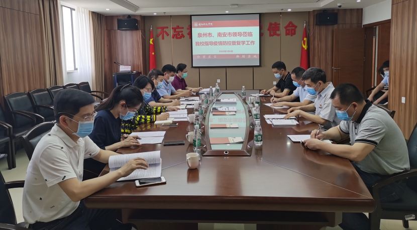 5月6日上午,泉州市政府副市长周真平带队莅临我校检查指导疫情防控和返校复学工作,泉州市教育局二级调研员毛伟雄,泉州市疾控中心副主任王伟明,南安市委常委、宣传部部长吴忠溪,南安市政府副市长王昭昭,南安市教育局副局长出宏裕陪同检查。校领导游小波、周勇军、吴勇、林树生,学校疫情防控工作领导小组成员参加检查。