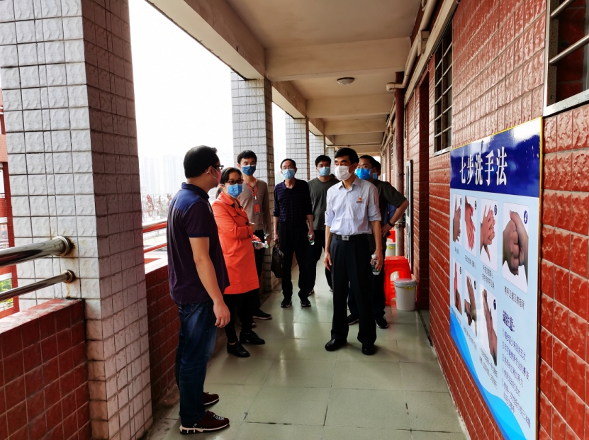 检查指导组一行实地查看了美林校区隔离场所的设置情况、卫生消毒设施、医学观察点及防控物资储备情况,详细了解疫情防控值班值守、环境消杀、开学疫情防控应急演练等工作进展,对我校有力有序落实各项防控措施给予了充分肯定。