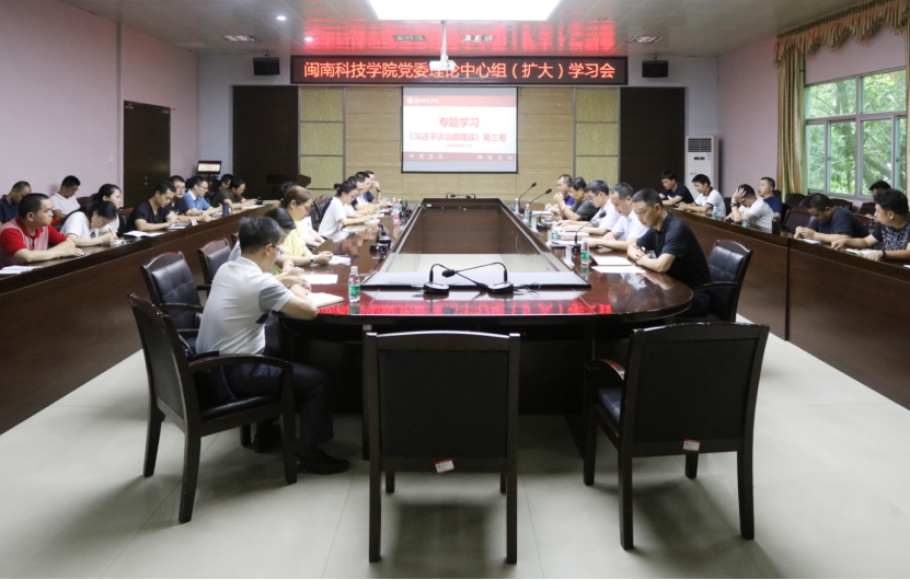 8月27日,我校党委召开党委理论学习中心组(扩大)学习会,集中学习研讨《习近平谈治国理政》第三卷。校领导游小波、周勇军、戴景星、吴勇、林树生,全体党委委员,全体中层干部,各二级学院院长、副院长、党总支负责人、学生工作负责人,各党支部书记参加学习会。会议由校党委委员、常务副校长周勇军主持。