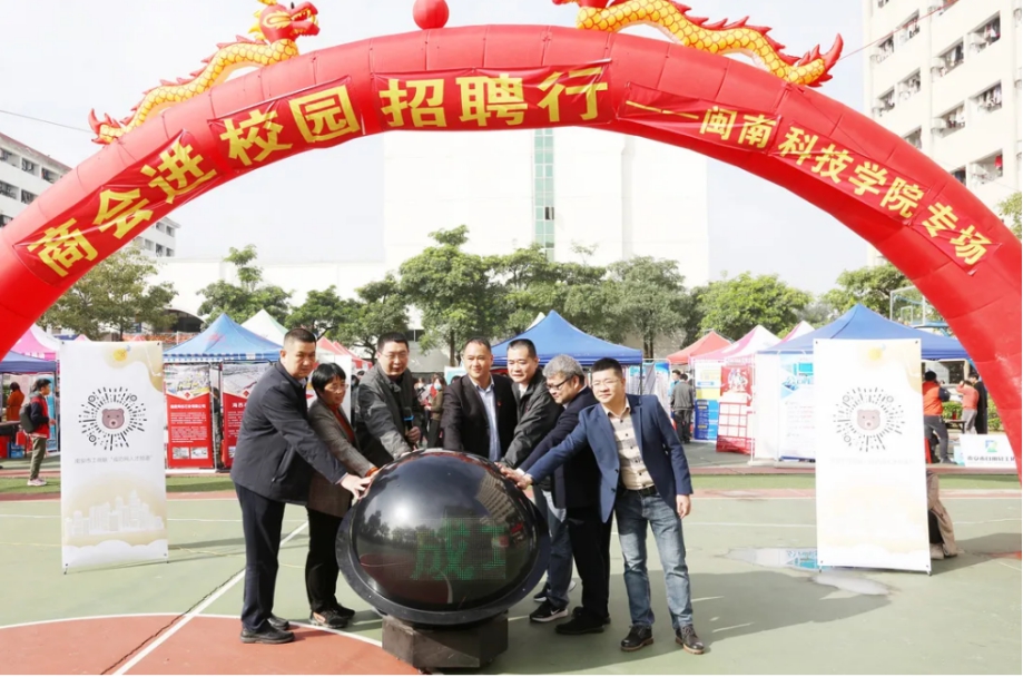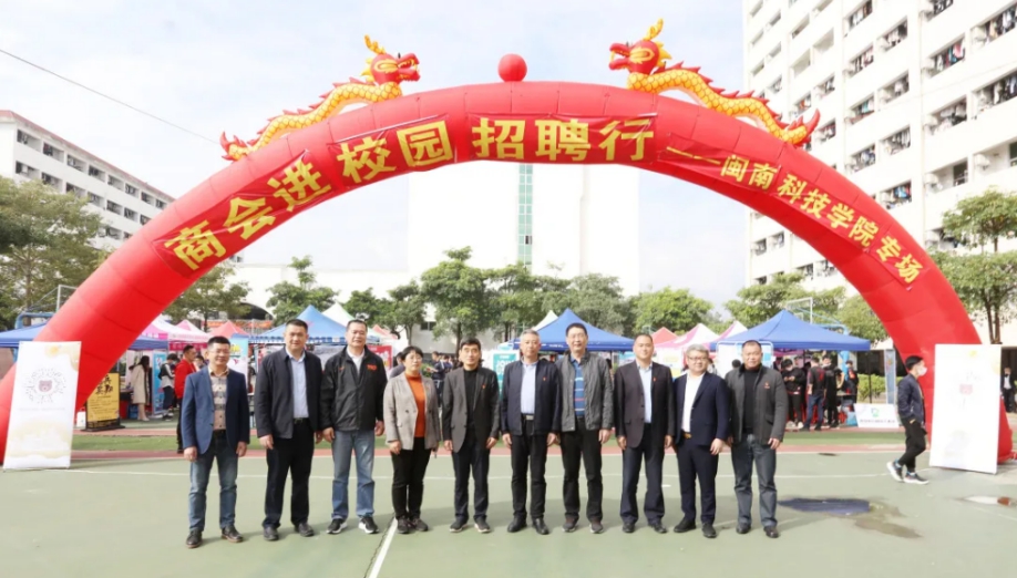 12月24日,我校联合南安市工商联、南安市人力资源和社会保障局举办“商会进校园招聘行”专场招聘会。南安市工商联党组成员、秘书长吴鸿祯,南安市工商联副主席周泗进、李景志,南安人社局副局长杨佩艺,南安市总商会副会长林国栋,校领导游小波、李旭、周勇军、林树生等前往招聘现场指导工作,亲切慰问招聘企业和求职学生。