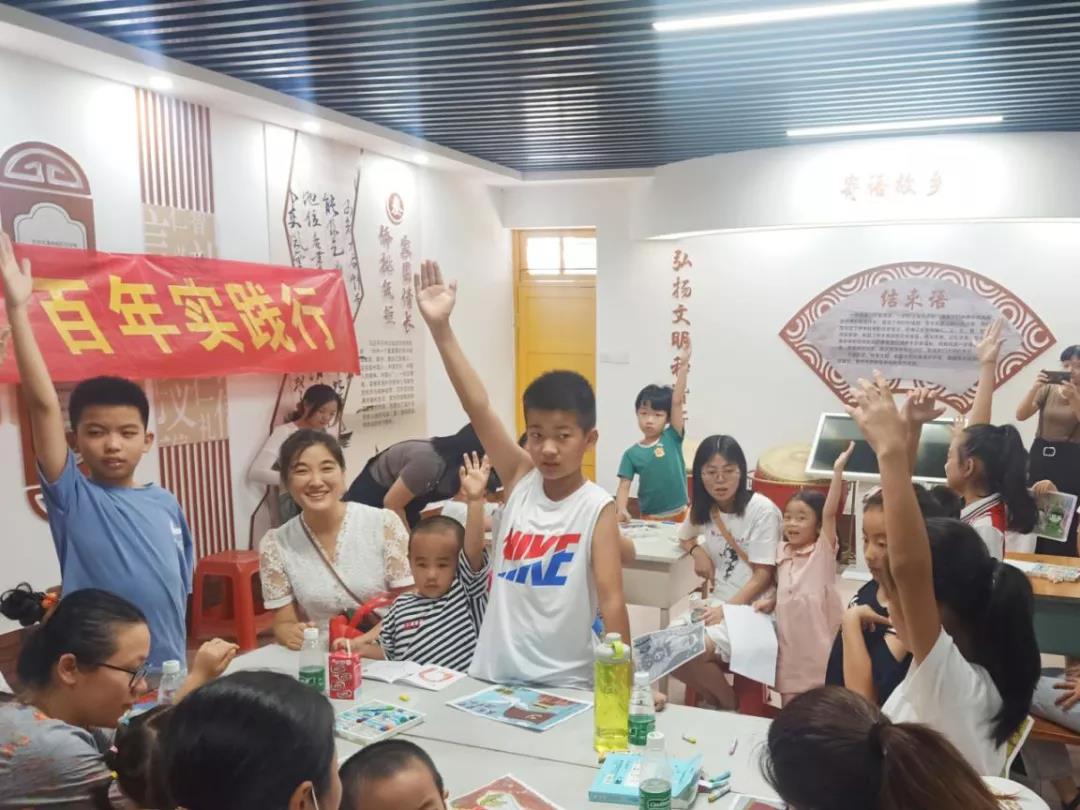 7月4日,在南安市李成智公众图书馆,实践队结合党旗、国旗、团旗介绍,党史知识有奖竞答,观看爱国影片《小英雄雨来》,“女英雄刘胡兰”“伟大革命者李大钊”事迹宣讲,《红色家书》《可爱的中国》朗诵以及党史故事绘画创作等丰富内容,开展“上下一心学‘四史’,砥砺意志同前行”主题活动。