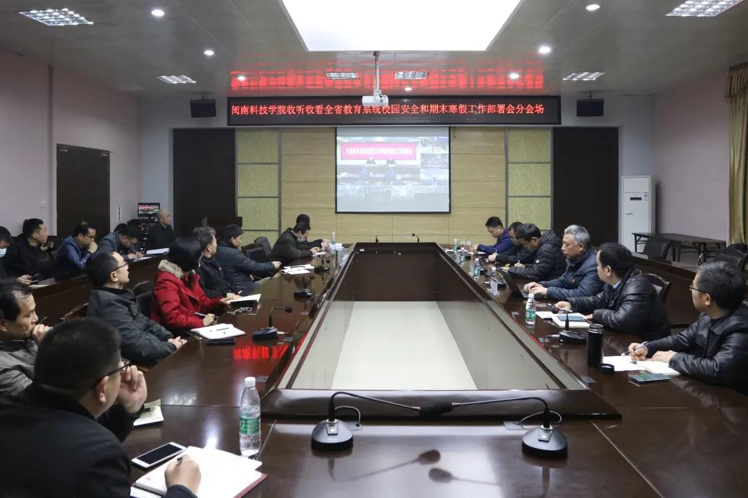 12月31日下午,省教育厅通过线上线下相结合的方式,召开2021年全省教育系统校园安全和期末寒假工作部署会议,对期末寒假校园安全、疫情防控及岁末年初有关工作作出部署。我校设立分会场,校领导游小波、李旭、林树生,各行政职能部门负责人,各二级单位党、政主要负责同志参加会议。
