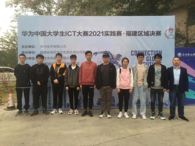 11月20日,第六届“华为中国大学生ICT大赛2021实践赛”福建区域决赛在泉州职业技术大学顺利举办。我校选派的三组学生队伍分别荣获一等奖1项、三等奖2项,匡凤飞、杨群伟、禹谢华作为获奖队伍的指导老师,被授予“优秀指导教师”荣誉称号。