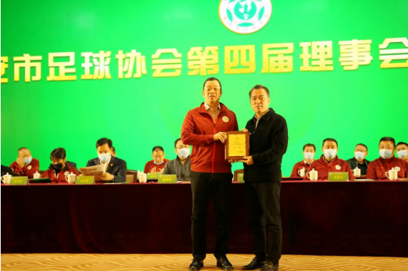 南安市市长张桂森为戴宽南担任南安市足协主席颁发牌匾