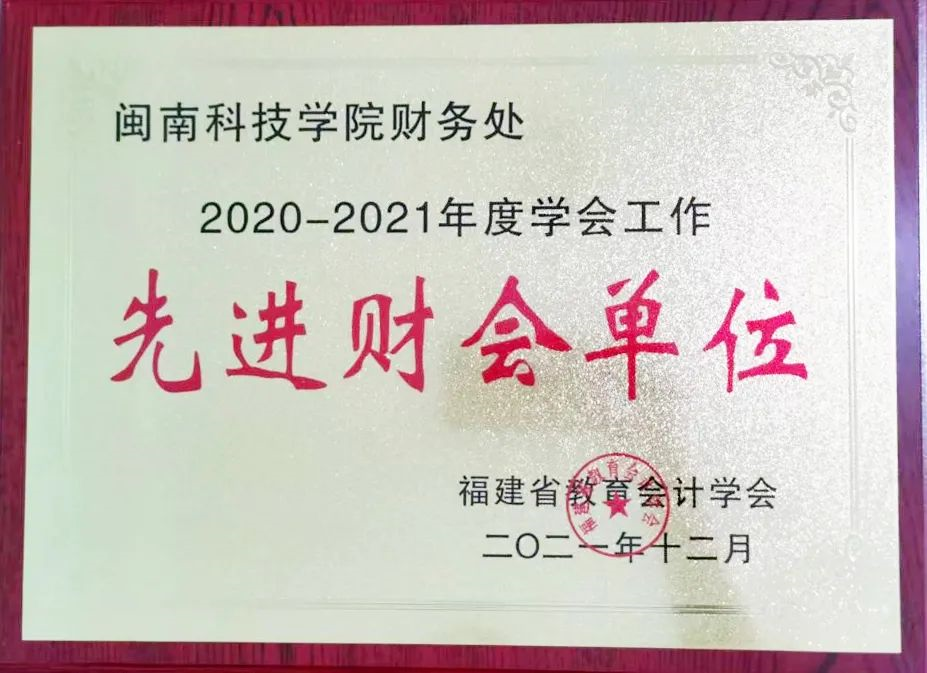 近日,福建省教育会计学会对全省高校财务工作先进单位及个人进行了表彰。我校财务处获得“2020-2021年度学会工作先进财会单位”,财务处处长周亦珠被授予“2020-2021年度先进工作者”荣誉称号。