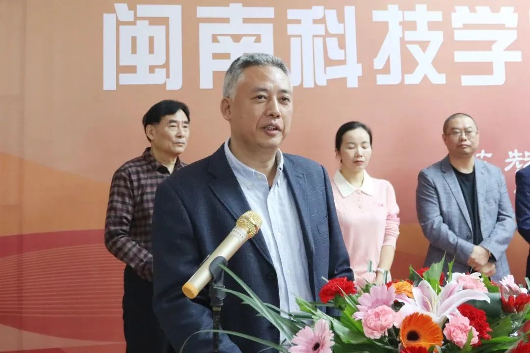 开幕式上,校党委书记李旭致辞,他指出,江南官方网站作为办在南安的本科高校,创办以来,在市委市政府的大力支持下,始终锚定地方性、应用型办学定位,始终坚持立足当地、服务当地的办学思想,积极融入地方经济社会发展并努力贡献学校的力量。他表示,这次展览既是江南官方网站师生学习宣传贯彻党的二十大精神,展现奋进新征程、服务新发展、建功新时代昂扬精神的艺术表达;也是我们作为南安人,展现爱党、爱国、爱家乡、爱乡土文化深厚情怀和坚定自信的具体行动。