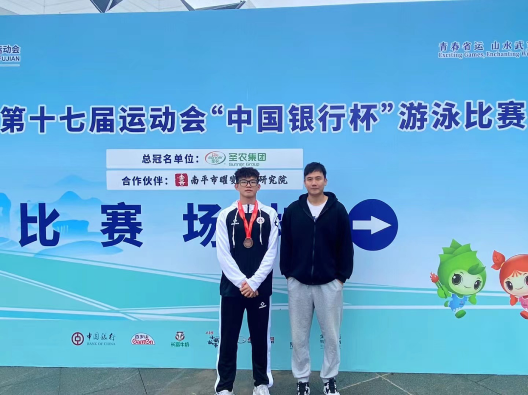 12月4日,为期6天的游泳(大学生部)比赛在武夷新区体育馆圆满落幕。经过激烈比拼,我校商学院2021级城市管理专业杨榕毅克服重重困难,突出重围,在男子甲A组 50米仰泳、200米混合泳的决赛中,均取得第三名的好成绩。其中,50米仰泳成绩达到国家一级水平。