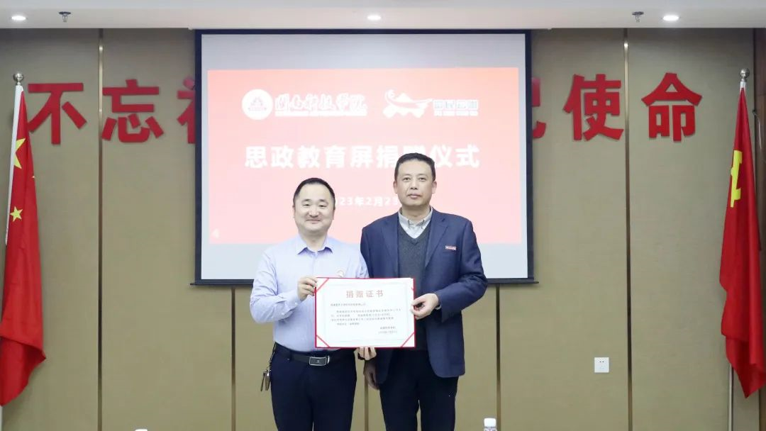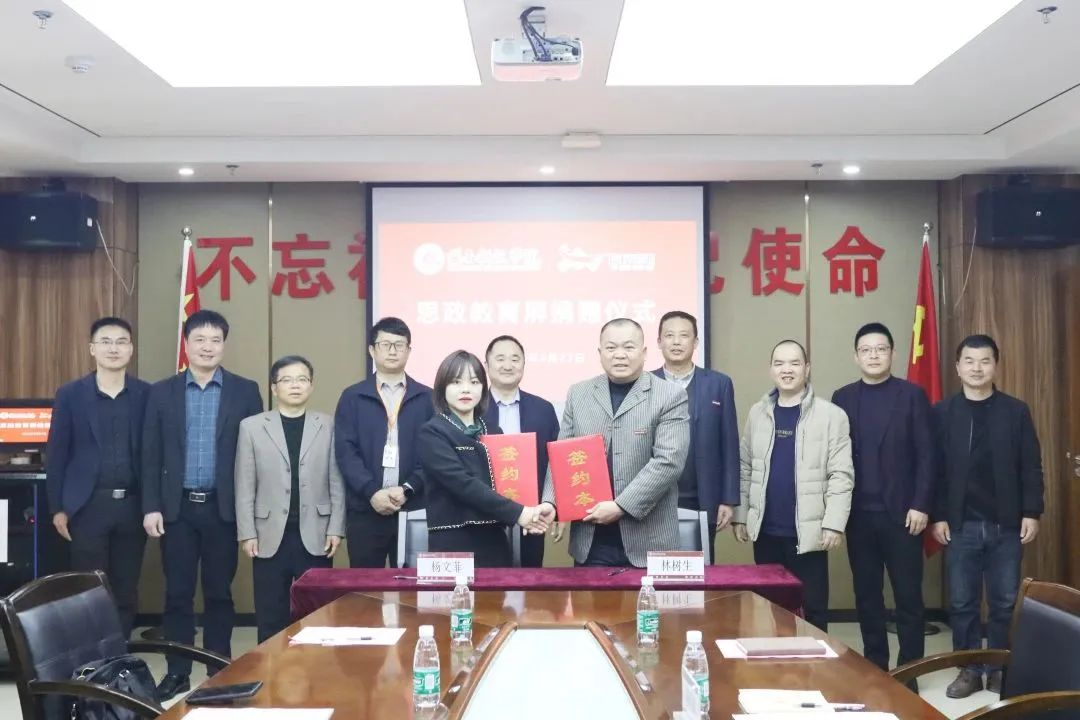 “百校千屏”思政教育屏捐赠活动由福建创智联盟数字教育科技有限公司联合福建富民云咖集团共同发起,分别提供设备和耗材,福建创智联盟数字教育科技有限公司是海峡出版发行集团旗下全资子公司。此次捐赠的思政教育屏将服务于全校师生,开辟了校内的江南jiangnan(中国)教育新阵地。校企双方共建实践教学基地,将积极打造“党建+思政+产教融合+平台”模式,整合校企资源,共建产学研合作。