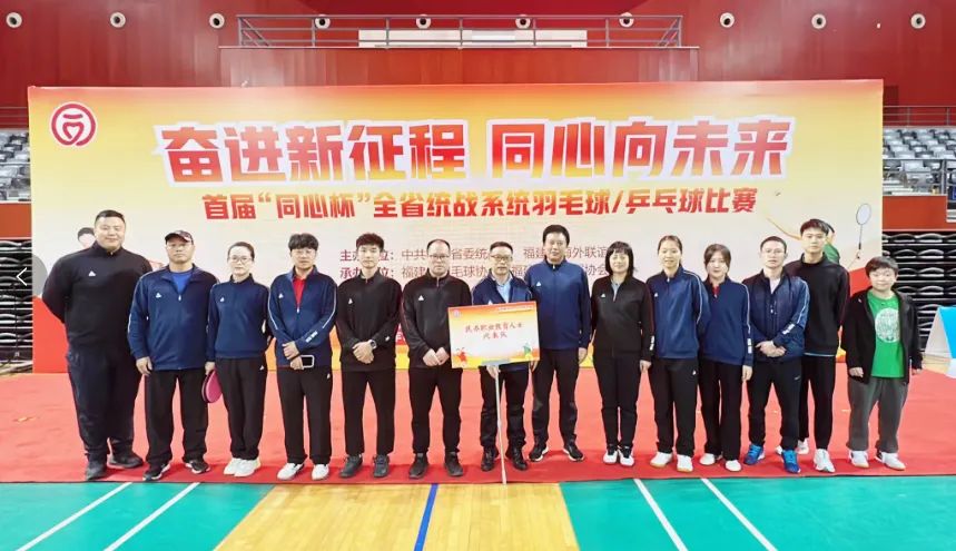 12月16日-17日,首届“同心杯”全省统战系统羽毛球、乒乓球比赛在福州马尾区举行。我校组织教师参加民办职业教育人士代表队参赛,分别获得羽毛球比赛三等奖(运动员:吴明才、黄凯锋)和乒乓球比赛组织奖(运动员:李旭、刘林建成、陈美龙)。