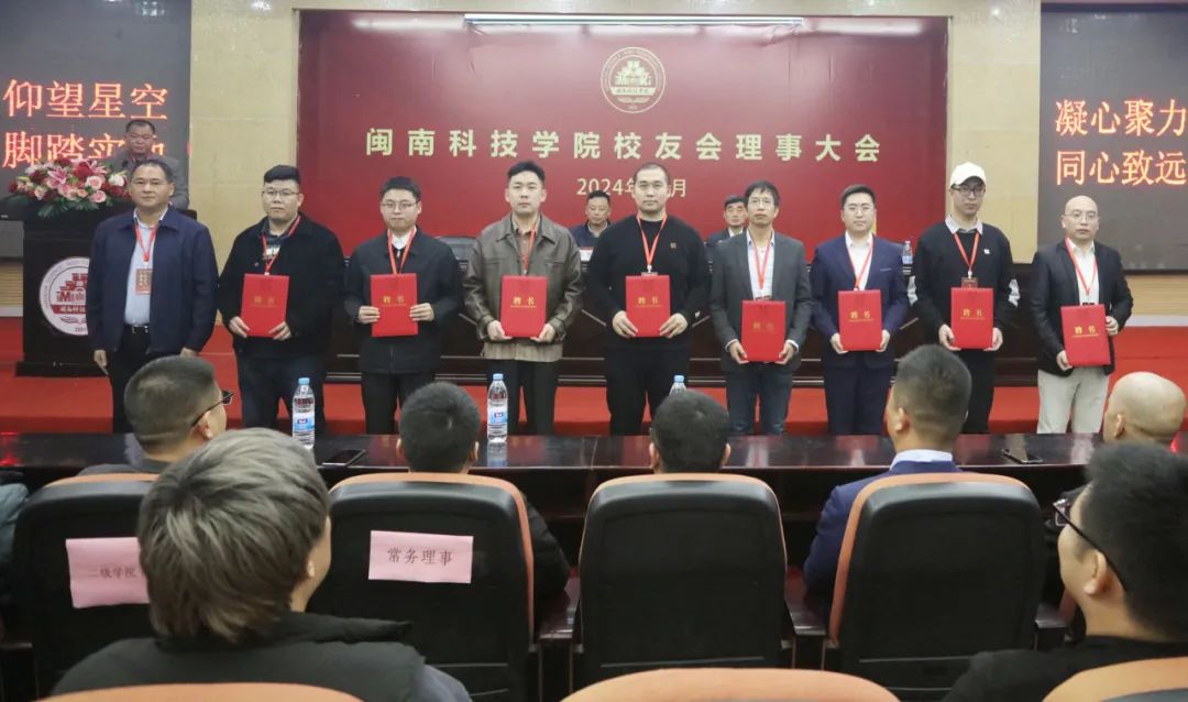 校友会会长、校常务副校长周勇军为第一届校友会理事会增补理事颁发聘书